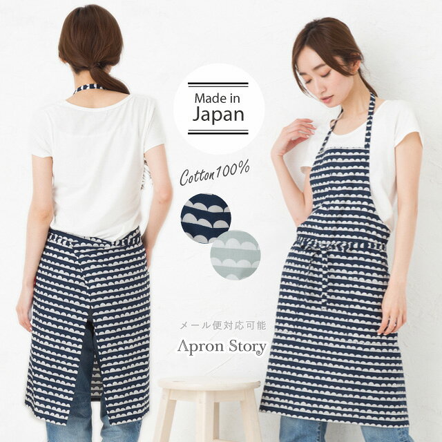 半円柄ホルターネックエプロン 日本製 薄手 かわいい おしゃれ シンプル プレゼント ギフト 母の日【メール便2枚まで対応可能】【N】【Y】